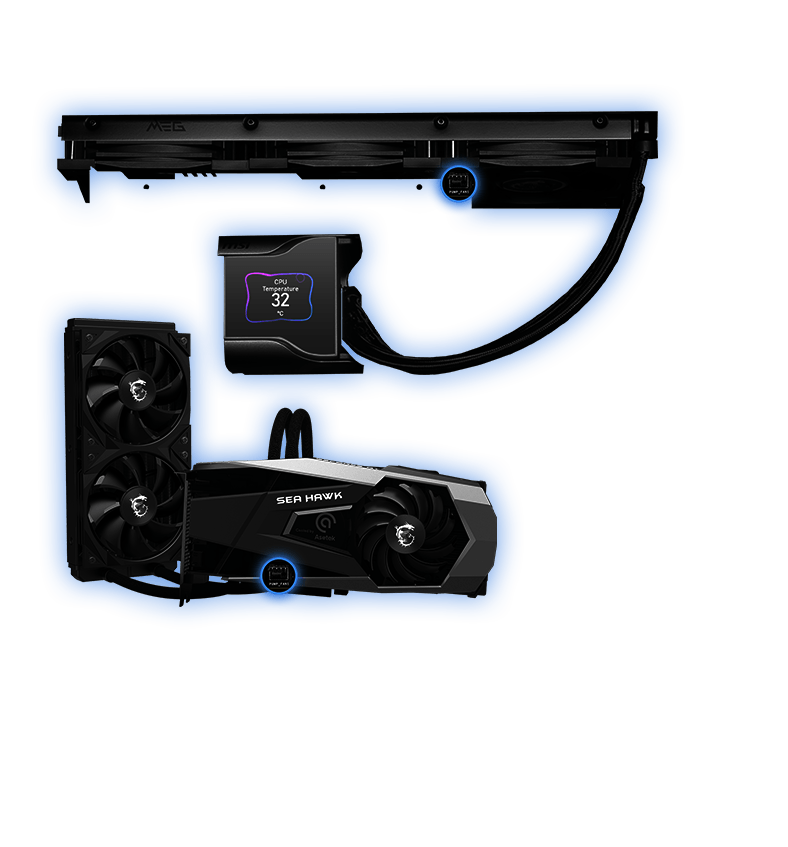 排针配置在最佳的位置(包含专用的水泵供电接头),并可以连接MSI 散热器和机壳,进行整合同步。