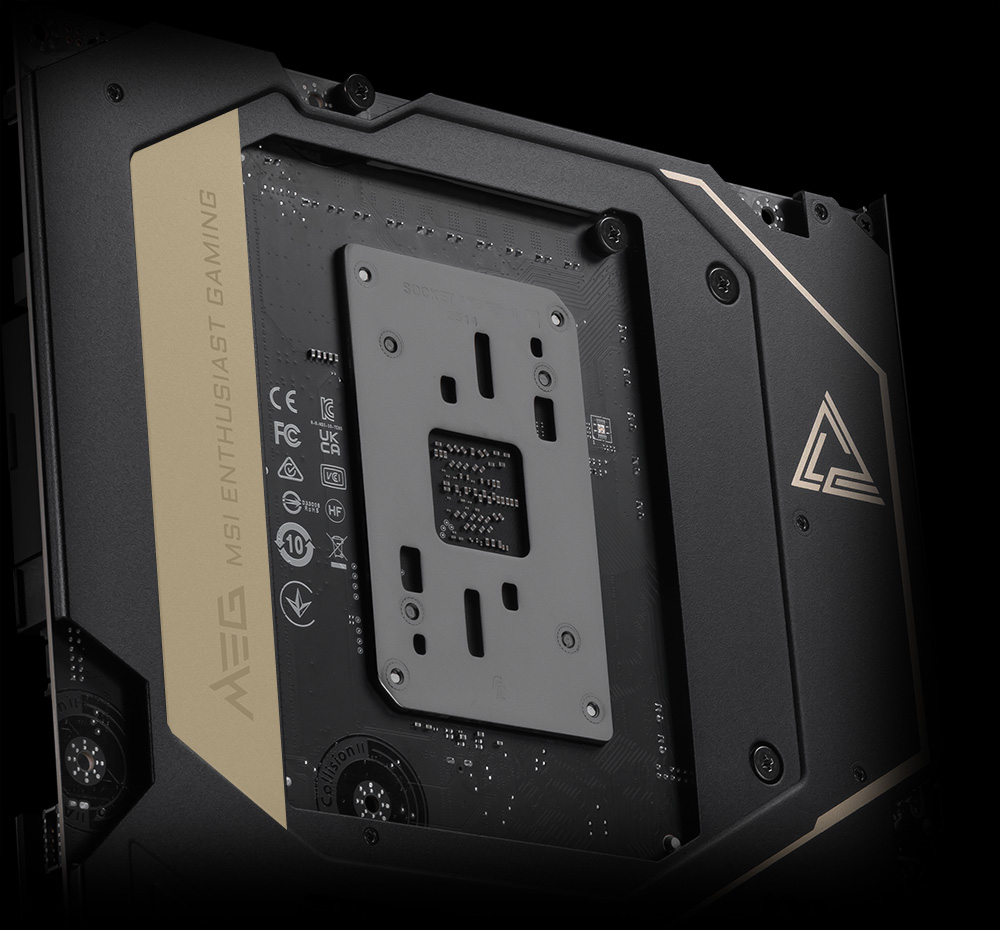 厚实金属背板不仅可以让附有专用散热垫的MOSFET降温.同时可以强化主板保护零件.避免 PCB 弯曲.安装上也更方便、更安全。