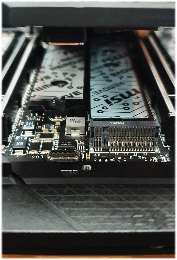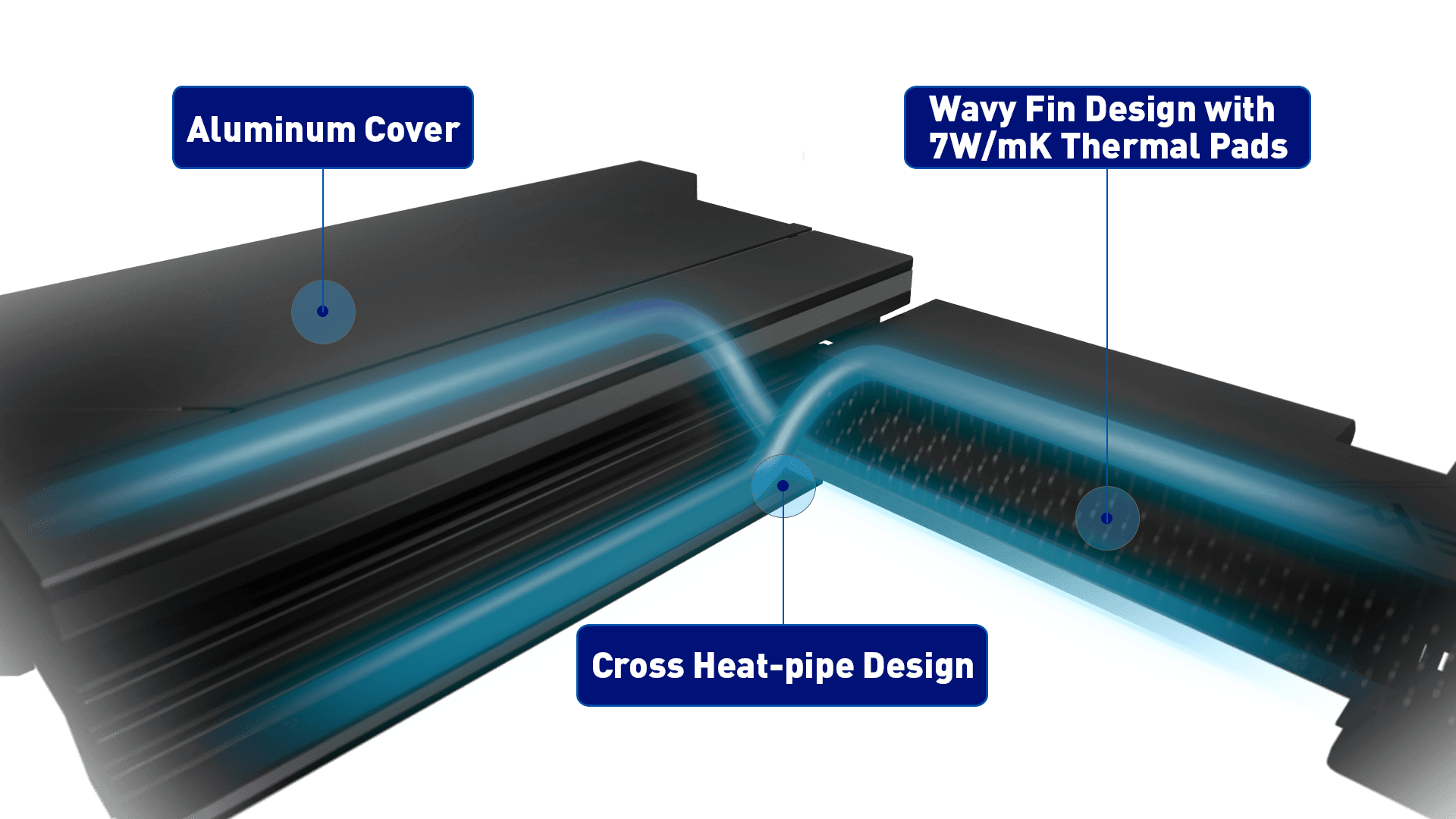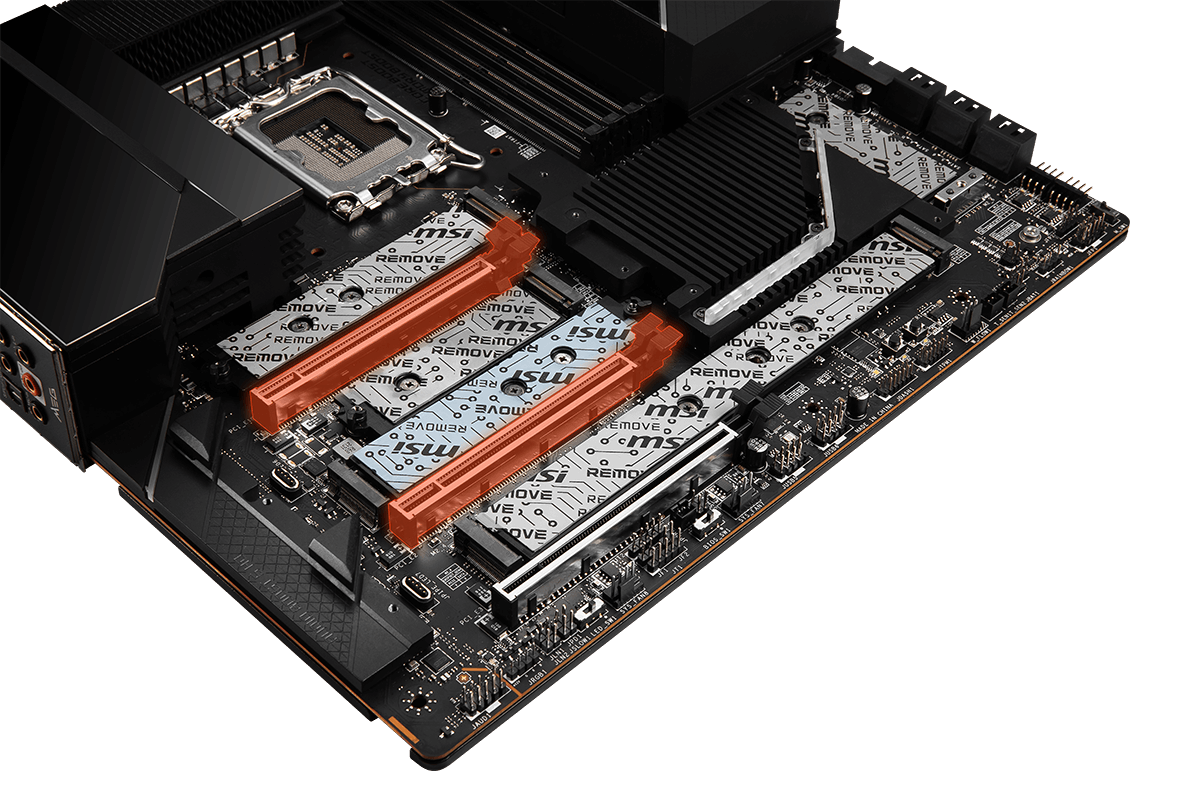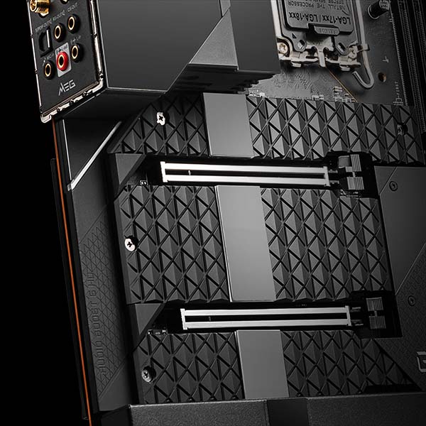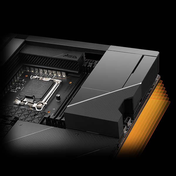- Premium Thermal Module: Wavy fin design, Cross Heat-pipe, 7W/mK thermal pads, and Double-Sided M.2 Shield Frozr ensure the extreme performance with low temperature.