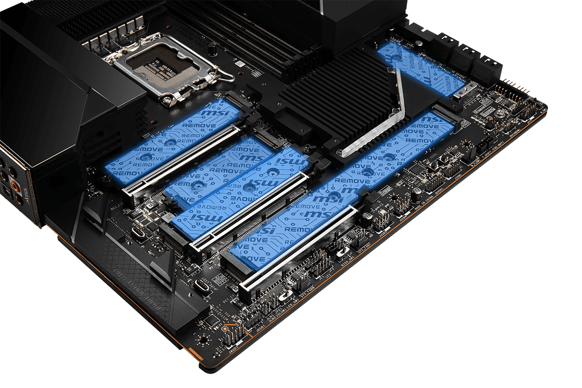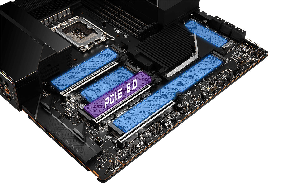 - Sextuple M.2 Connectors: Onboard 6x M.2 connectors for the maximum storage performance with one Lightning Gen 5 solution. Shield Frozr design keeps M.2 SSDs safe while preventing throttling, making them run faster.