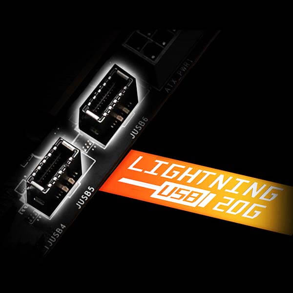 - Lightning Fast Game experience: PCIe 5.0 slots, Lightning Gen 5 x4 M.2, Dual Front USB 3.2 Gen 2x2 20G.