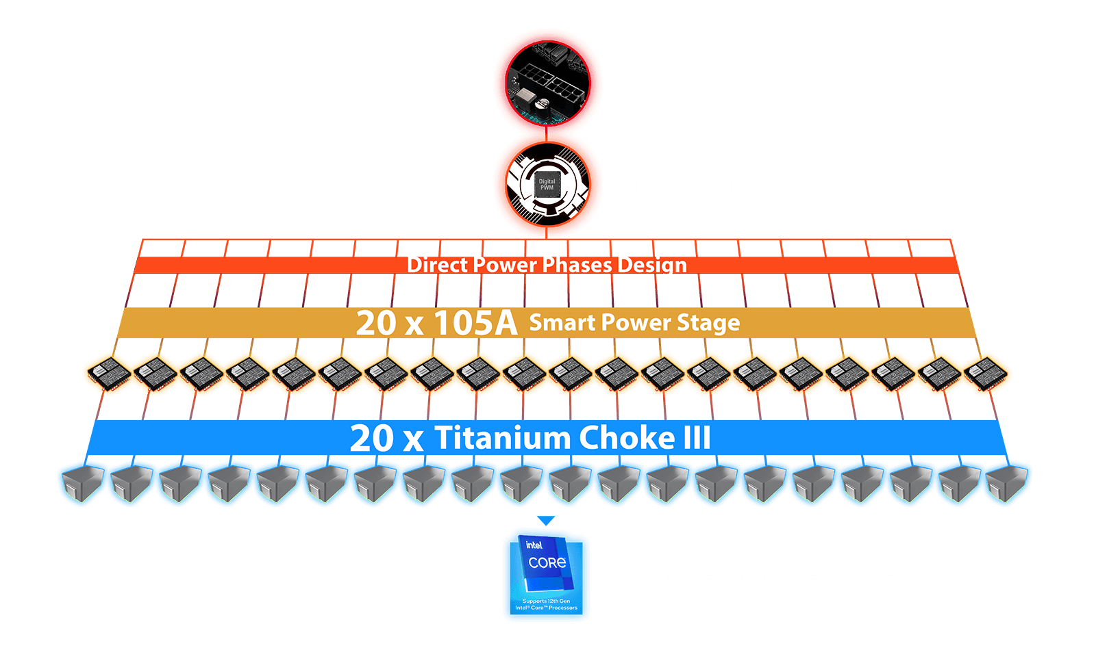 - Extreme Power Design: Direct 20+2 phases with 105A Smart Power Stage, Titanium Choke III and dual CPU power connectors to unleash the maximum performance.
