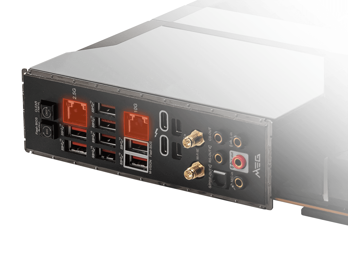 - Latest Network Solution: Onboard 10G Super LAN, Intel 2.5G LAN and latest Wi-Fi 6E solution deliver the best online experience without lag.