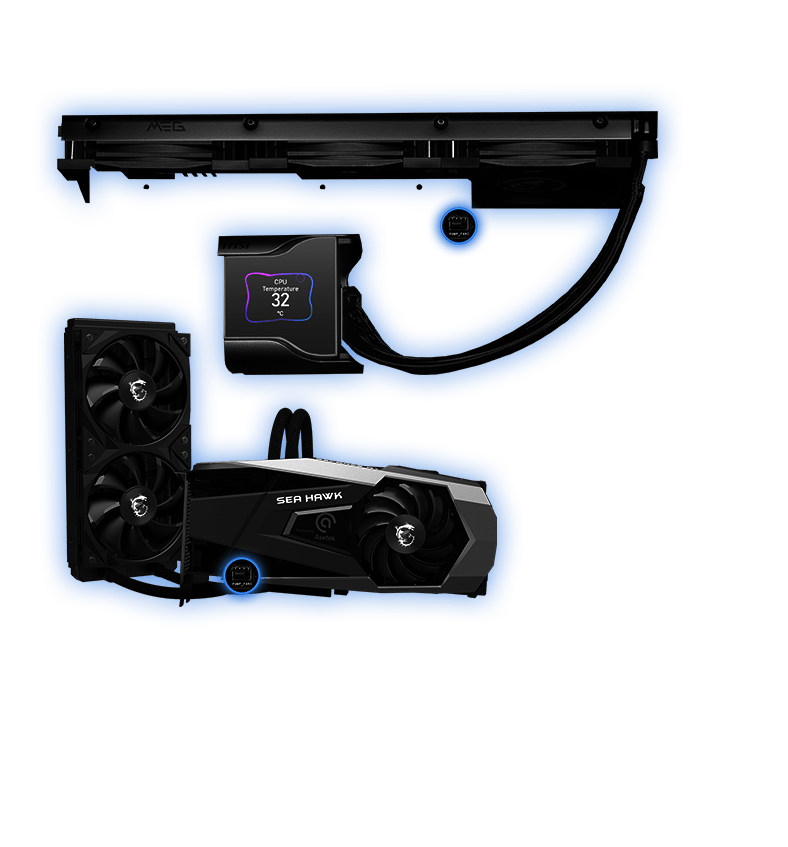 排针配置在最佳的位置(包含专用的水泵供电接头),并可以连接MSI 散热器和机壳,进行整合同步。