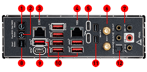 Wi-Fi 7The Wireless module is pre-installed in the M.2 (Key-E) slot Supports MU-MIMO TX/RX, 2.4GHz / 5GHz / 6GHz* (320MHz) up to 5.8Gbps Supports 802.11 a/ b/ g/ n/ ac/ ax/ be Supports Bluetooth® 5.4**, MLO, 4KQAM * 6GHz band support may depend on every country’s regulations and Wi-Fi 7 will be ready in Windows 11 SV3. ** The Bluetooth version may be updated, please refer to the Wi-Fi chipset vendor’s website for details. Bluetooth 5.4 support schedule depends on MSFT Windows 11 plan. |