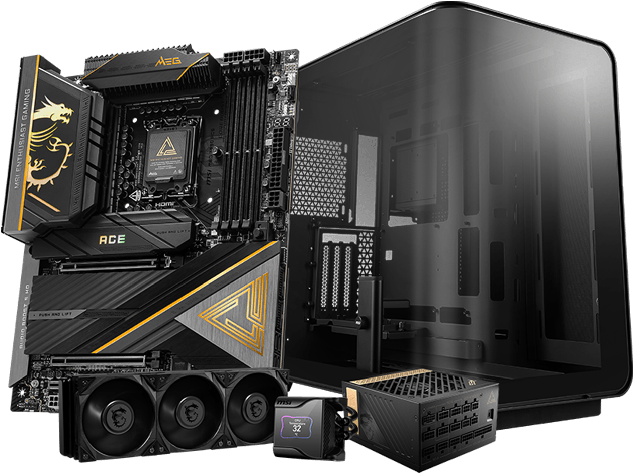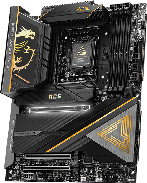 MEG Z890 ACE ,黑金设计、高端简约奢华。专为释放Intel Core Ultra 处理器全部潜力而设计,结合顶规硬体系统和卓越的耐用性,确保处理器在极限环境下,让DDR5 记忆体和显示卡稳定超频发挥极致效能。