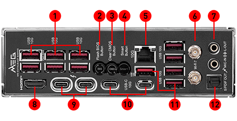 1x HDMI™Support HDMITM 2.1 with FRL port, maximum resolution of 8K 60Hz*2x Type-C DisplayPortThunderbolt™ 4 ports, supporting DisplayPort 2.1 with UHBR20 over USB Type-C, with a maximum resolution of 4K@120Hz / 8K@60Hz* * Available only on processors featuring integrated graphics. Graphics specifications may vary depending on the CPU installed. |