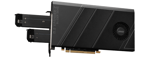 M.2 XPANDER-Z SLIDER GEN5: The one-slot-thick M.2 expansion card features dual high-speed Gen5 M.2 slots, and the EZ Slide design makes SSD upgrades effortless.