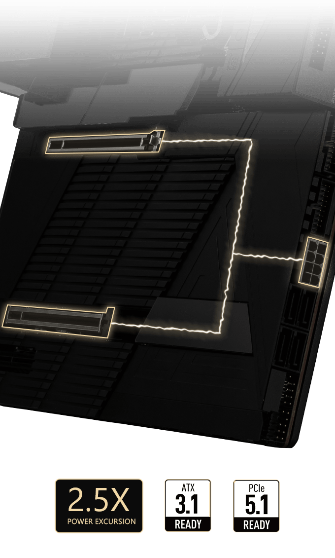 Ultra Performance: 26+2+1+1 Duet Rail Power System, 110A SPS, OC Engine, dual 8-pin CPU power connectors, Core Boost, Memory Boost, 10-layer PCB made by 2oz thickened copper and server-grade level material.