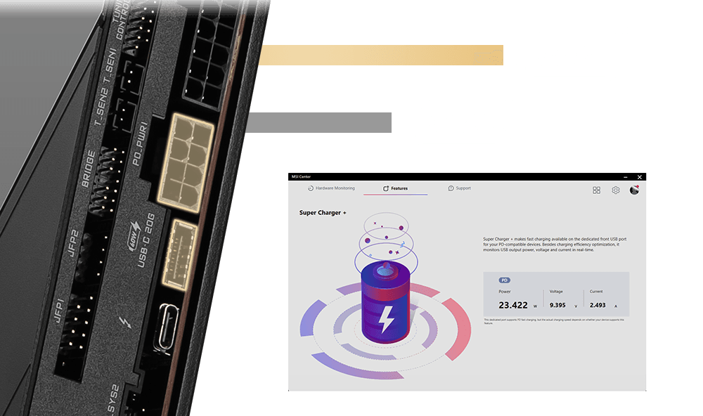 Lightning Fast Game Experience: PCIe 5.0 slots, Total 8x M.2 Connectors with Lightning Gen 5 Solution, Front USB 20G with 60W USB Power Delivery.