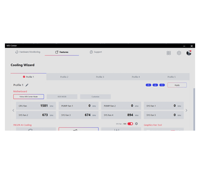 Frozr Guard: Wavy fin design, Direct Touch Cross Heat-pipe, MOSFET Baseplate, 9W/mK thermal pads, Double-Sided M.2 Shield Frozr and Frozr AI software ensure the utmost performance with low temperature.