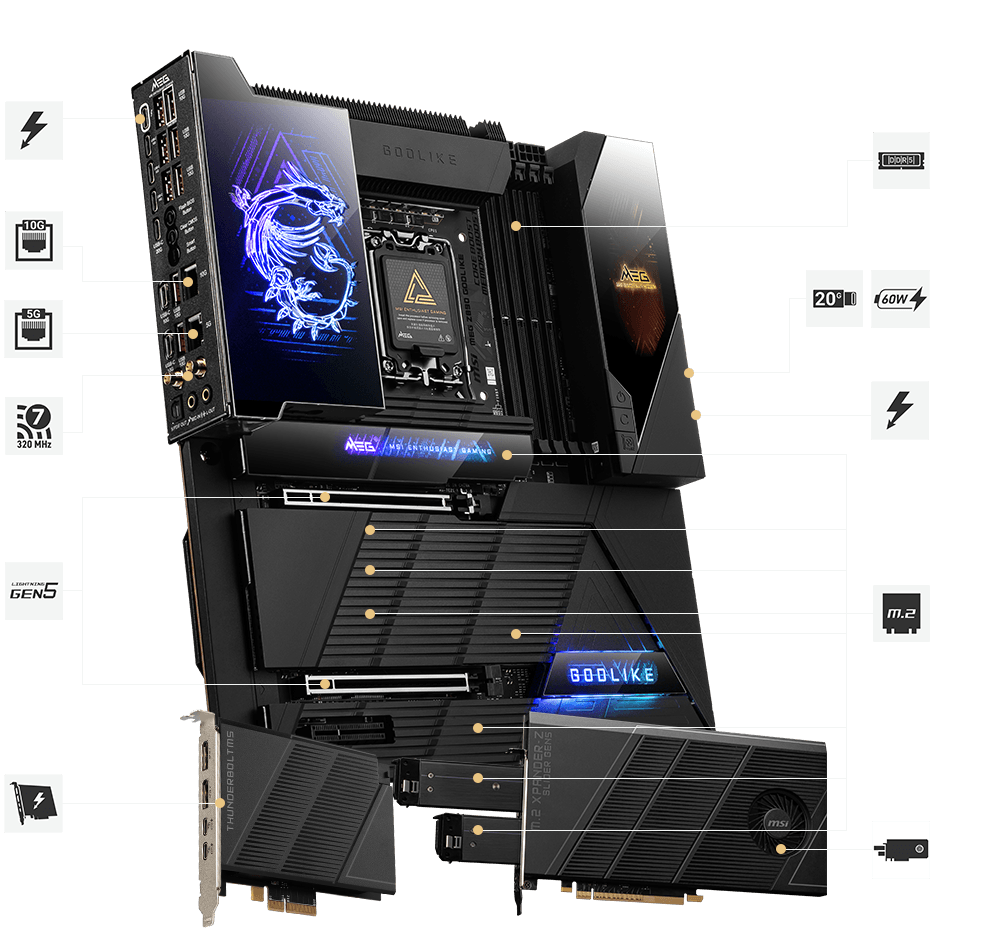 processors, the MEG Z890 GODLIKE equips true Wi-Fi 7, 10G Super LAN, Thunderbolt 5, Supplemental