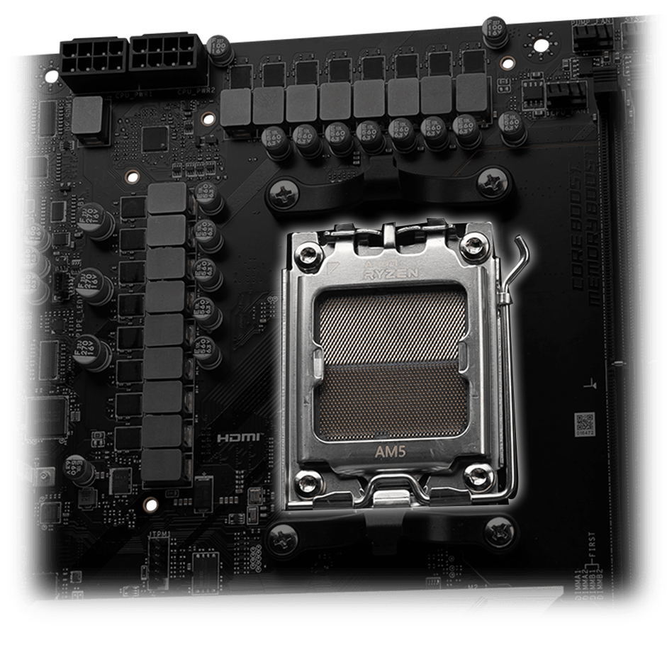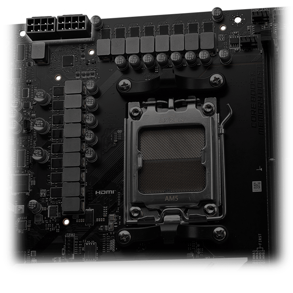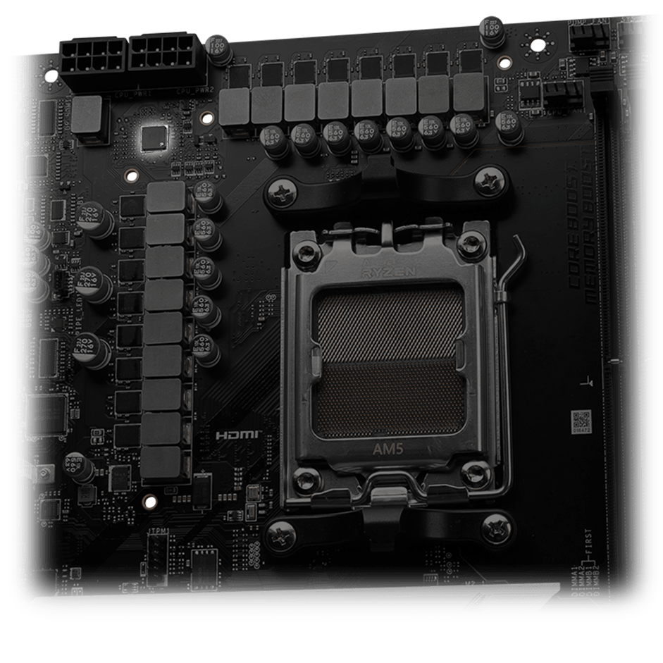 Unleash and sustain the maximum performance with a flagship VRM design built with a total of 14+2+1 Duet Rail Power System (DRPS). Combining dual power connectors and 80A Smart Power Stage, MPG B650 EDGE WIFI is ready for the challenge of high-end processors.