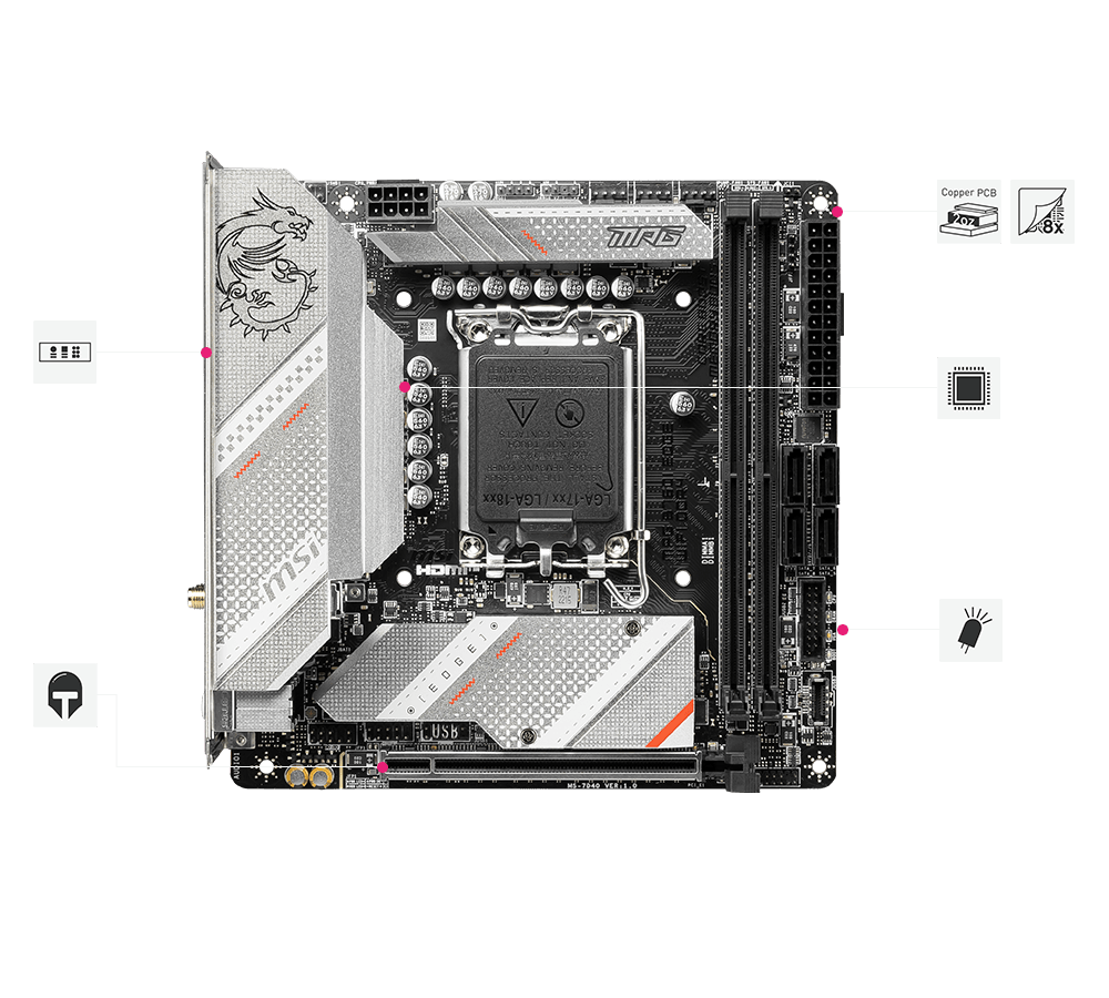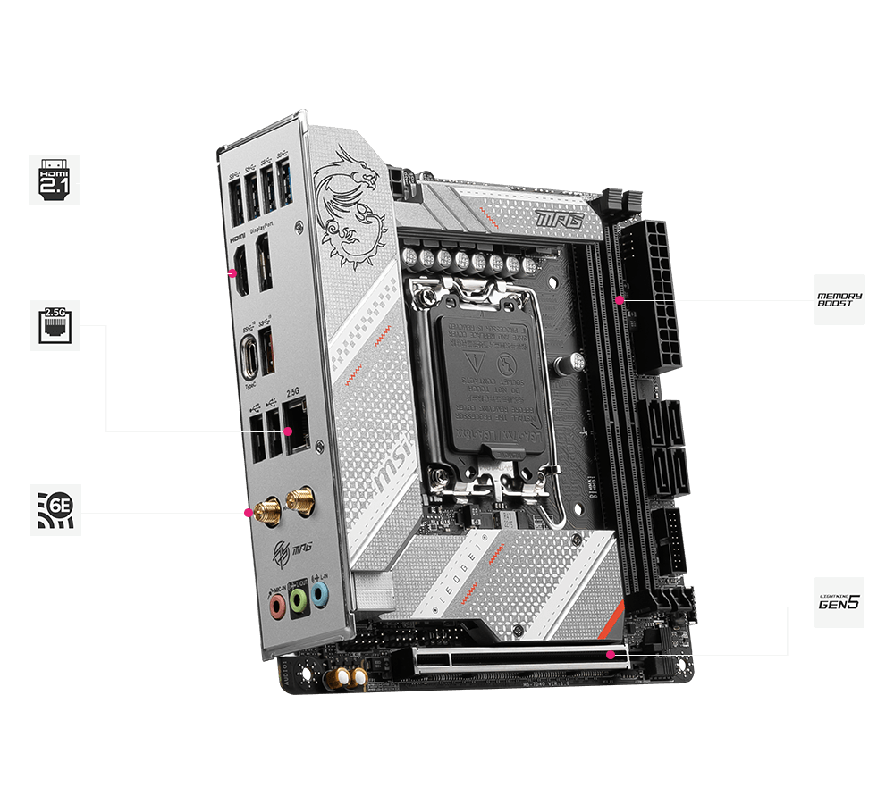MPG B760I EDGE WIFI DDR4 employs silver white color scheme to show off different personality and identity. Besides being stylish, it is also powerful.