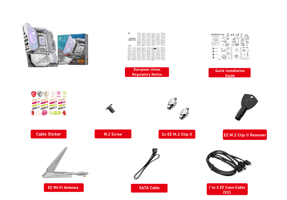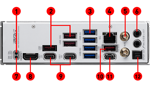 Wi-Fi 7The Wireless module is pre-installed in the M.2 (Key-E) slot Supports MU-MIMO TX/RX, 2.4GHz/ 5GHz/ 6GHz* (320MHz) up to 5.8Gbps Supports 802.11 a/ b/ g/ n/ ac/ ax/ be Supports Bluetooth® 5.4**, MLO, 4KQAM * 6GHz band support may depend on every country’s regulations and Wi-Fi 7 will be ready in Windows 11 version 24H2. ** The Bluetooth version may be updated, please refer to the Wi-Fi chipset vendor’s website for details. Bluetooth 5.4 will be ready in Windows 11 version 24H2. |