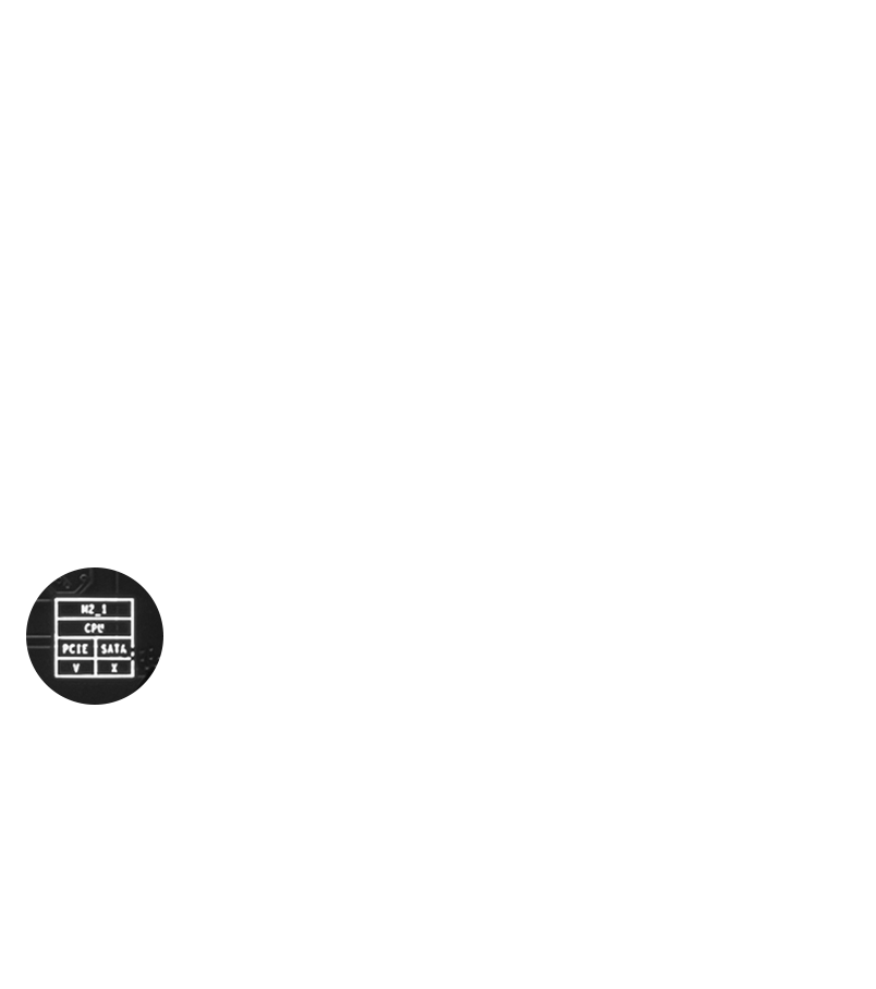 The advanced SMT(Surface Mount Technology) PCIE slot diminish interference and electrical noise, fully support the PCI-E 5.0 signal.