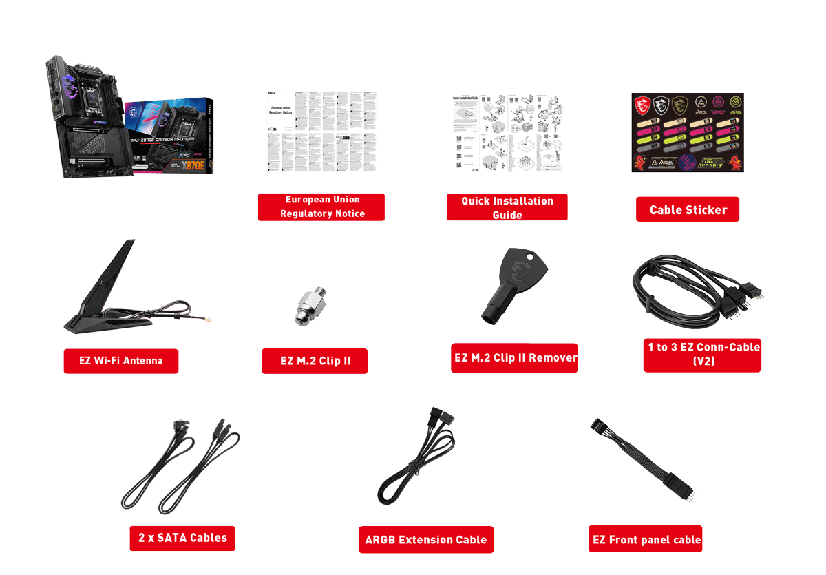 Wi-Fi 7 SolutionThe Wireless module is pre-installed in the M.2 (Key-E) slot Supports MU-MIMO TX/RX, 2.4GHz/ 5GHz/ 6GHz* (320MHz) up to 5.8Gbps Supports 802.11 a/ b/ g/ n/ ac/ ax/ be Supports Bluetooth® 5.4**, MLO, 4KQAM * 6GHz band support may depend on every country’s regulations and Wi-Fi 7 will be ready in Windows 11 version 24H2. ** The Bluetooth version may be updated, please refer to the Wi-Fi chipset vendor’s website for details. Bluetooth 5.4 will be ready in Windows 11 version 24H2. |