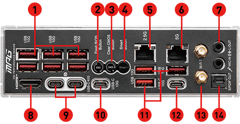 1x Realtek® 8126 5G LAN 1x Realtek® 8125 2.5G LAN |