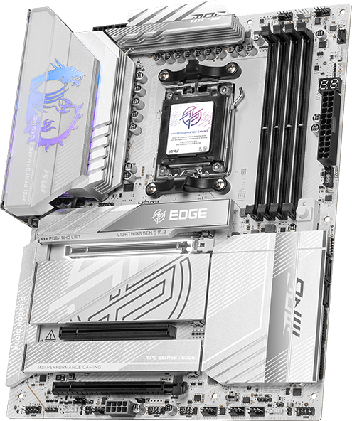 MPG X870E EDGE TI WIFI is covered with a silver-white color scheme for white PC build lovers to show off different identity. It is also powerful because of its true Wi-Fi 7 solution, 5G LAN, USB4, and the latest PCIe 5.0 compatibility, Supplemental PCIe Power, and this is the best white theme X870E ATX motherboard for AMD Ryzen™ 9000 series processors.