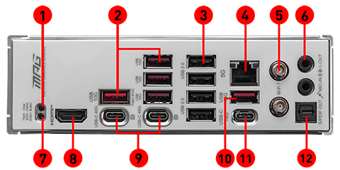 Wi-Fi 7The Wireless module is pre-installed in the M.2 (Key-E) slot Supports MU-MIMO TX/RX, 2.4GHz/ 5GHz/ 6GHz* (320MHz) up to 5.8Gbps Supports 802.11 a/ b/ g/ n/ ac/ ax/ be Supports Bluetooth® 5.4**, MLO, 4KQAM * 6GHz band support may depend on every country’s regulations and Wi-Fi 7 will be ready in Windows 11 version 24H2. ** The Bluetooth version may be updated, please refer to the Wi-Fi chipset vendor’s website for details. Bluetooth 5.4 will be ready in Windows 11 version 24H2. |