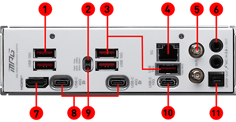 Wi-Fi 7The Wireless module is pre-installed in the M.2 (Key-E) slot Supports MU-MIMO TX/RX, 2.4GHz/ 5GHz/ 6GHz* (320MHz) up to 5.8Gbps Supports 802.11 a/ b/ g/ n/ ac/ ax/ be Supports Bluetooth® 5.4**, MLO, 4KQAM * 6GHz band support may depend on every country’s regulations and Wi-Fi 7 will be ready in Windows 11 SV3. ** The Bluetooth version may be updated, please refer to the Wi-Fi chipset vendor's website for details. Bluetooth 5.4 support schedule depends on MSFT Windows 11 plan. |