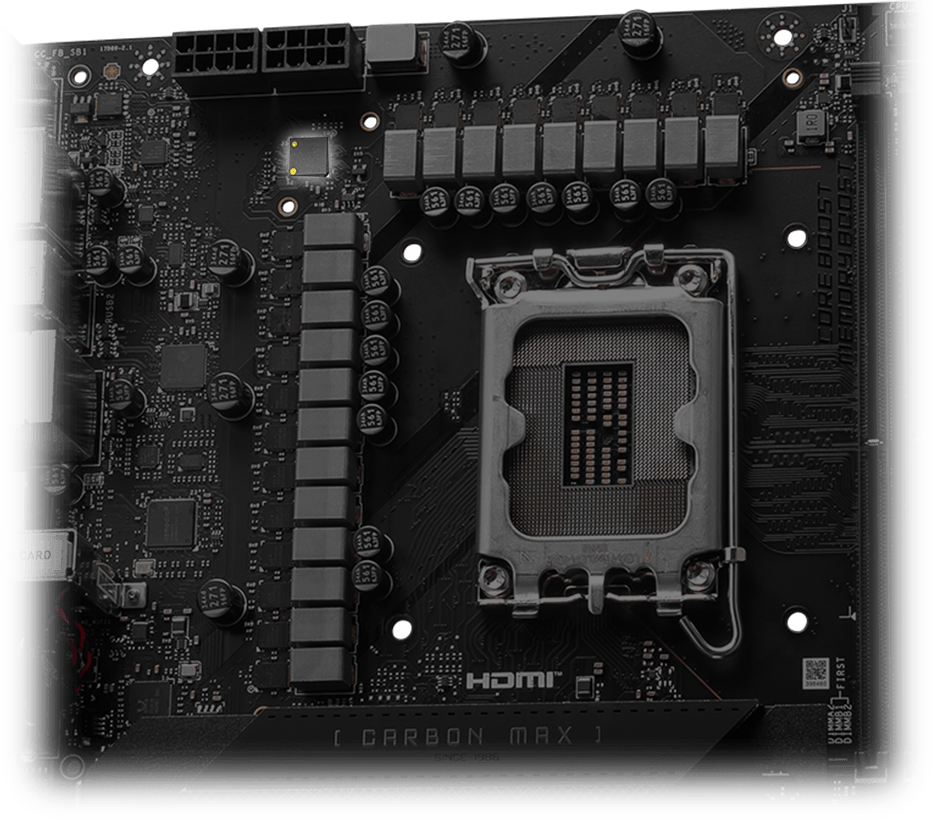 Unleash and sustain the maximum performance with a flagship VRM design built with a total of Direct 19+1+1 Power Phases. Combining dual power connectors and 105A Smart Power Stage, MPG Z790 CARBON MAX WIFI II is ready for the challenge of high-end processors.