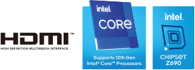 - 支持13/12代 英特尔 ® 酷睿™ / 奔腾 ® 金牌 / 赛扬 ® LGA1700 针脚处理器