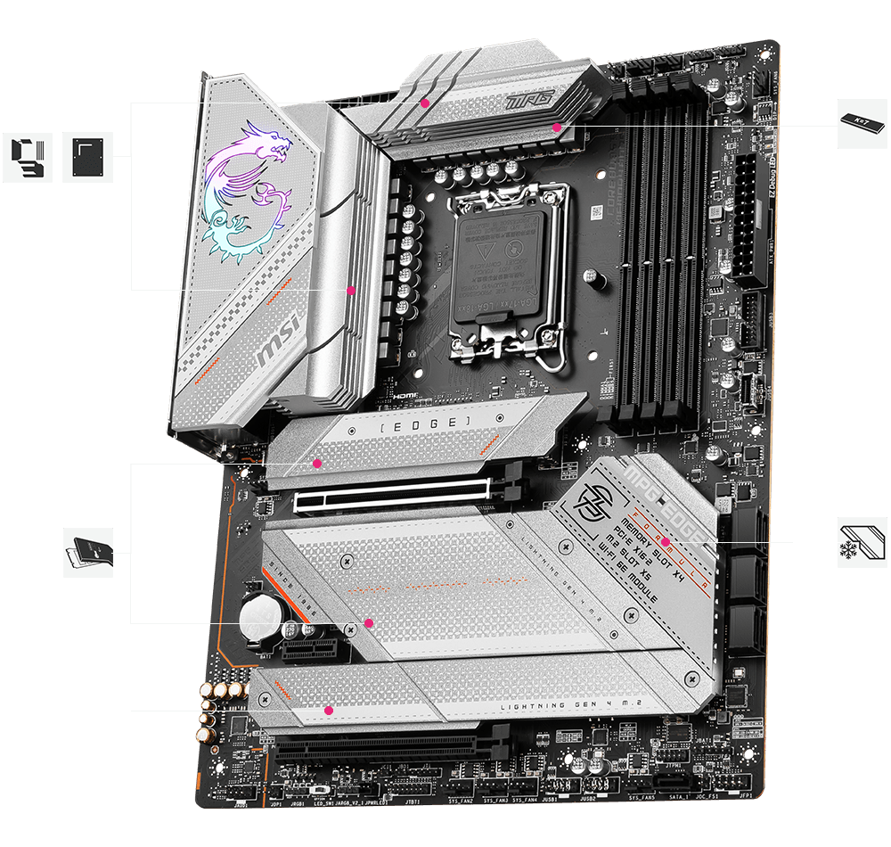 MPG Z790 EDGE WIFI 采用银白色配色,独特、个性、时尚。