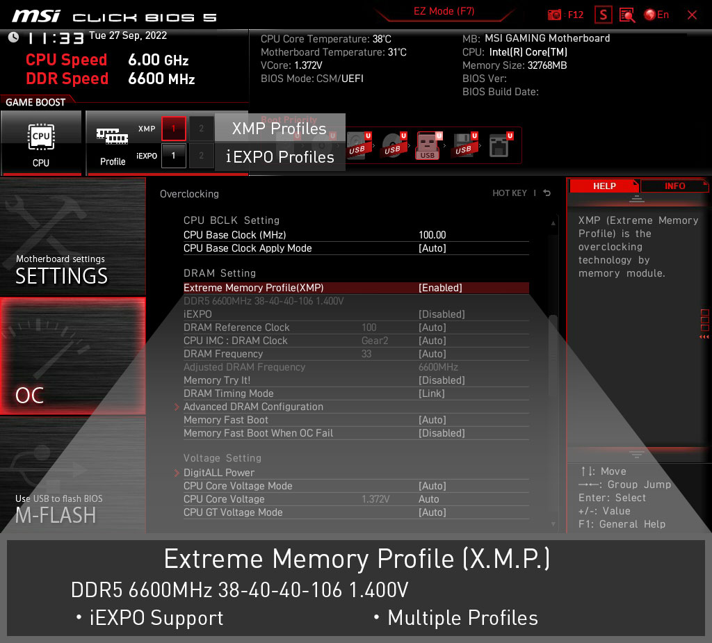 BIOS里内建EASY XMP (Extreme Memory Profiles) ,经由MSI OC lab 测试认证,更容易自动启用电源设定,以获得最佳的记忆体存取速度和稳定性。