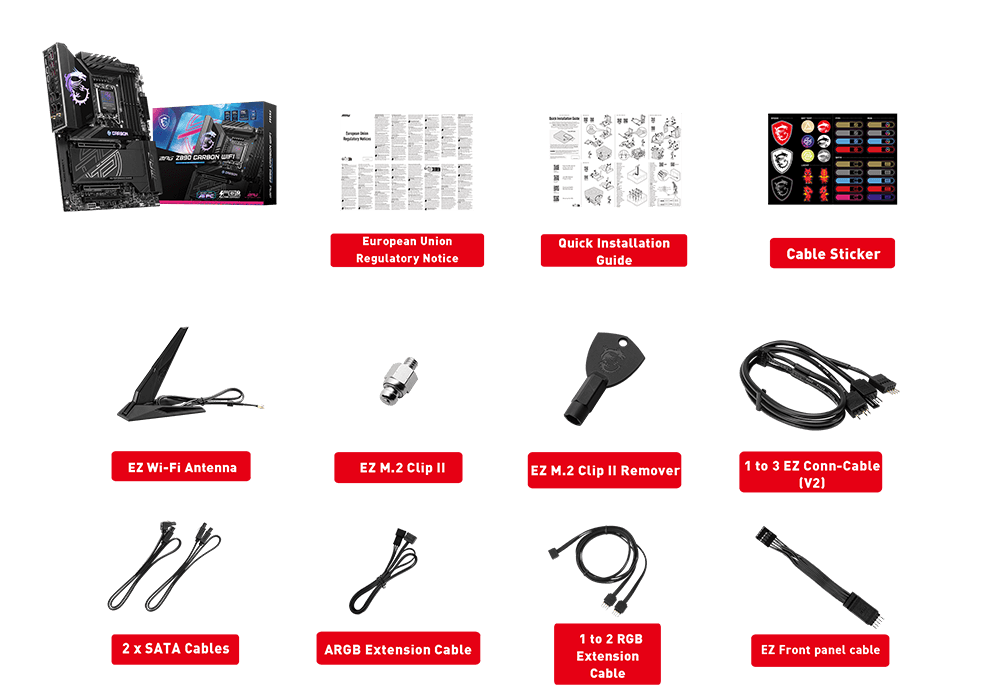 Intel® Killer™ BE1750x Wi-Fi 7The Wireless module is pre-installed in the M.2 (Key-E) slot Supports MU-MIMO TX/RX, 2.4GHz/ 5GHz/ 6GHz* (320MHz) up to 5.8Gbps Supports 802.11 a/ b/ g/ n/ ac/ ax/ be Supports Bluetooth® 5.4**, MLO, 4KQAM * 6GHz band support may depend on every country’s regulations and Wi-Fi 7 will be ready in Windows 11 version 24H2. ** The Bluetooth version may be updated, please refer to the Wi-Fi chipset vendor’s website for details. Bluetooth 5.4 will be ready in Windows 11 version 24H2. |