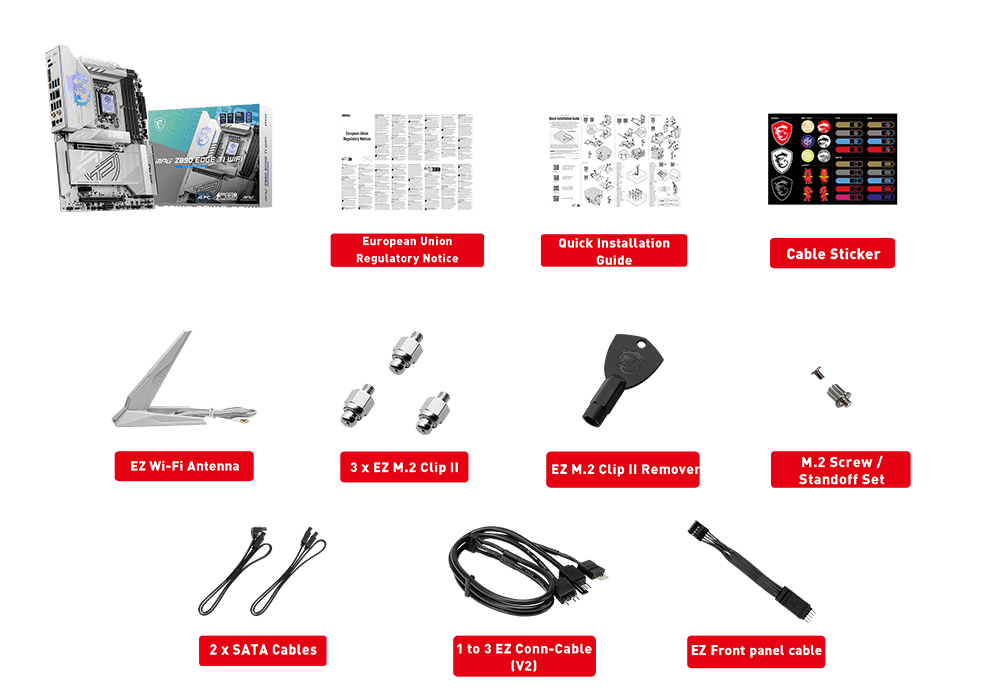 Intel® Killer™ BE1750x Wi-Fi 7The Wireless module is pre-installed in the M.2 (Key-E) slot Supports MU-MIMO TX/RX, 2.4GHz/ 5GHz/ 6GHz* (320MHz) up to 5.8Gbps Supports 802.11 a/ b/ g/ n/ ac/ ax/ be Supports Bluetooth® 5.4**, MLO, 4KQAM * 6GHz band support may depend on every country’s regulations and Wi-Fi 7 will be ready in Windows 11 version 24H2. ** The Bluetooth version may be updated, please refer to the Wi-Fi chipset vendor’s website for details. Bluetooth 5.4 will be ready in Windows 11 version 24H2. |