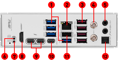 1x HDMI™Supports HDMITM 2.1 with FRL port, maximum resolution of 8K 60Hz*2x Type-C DisplayPortThundeboltTM 4 ports, , supporting DisplayPort 2.1 with UHBR20 over USB Type-C, with a maximum resolution of 4K@120Hz / 8K@60Hz* *Available only on processors featuring integrated graphics. Graphics specifications may vary depending on the CPU installed. |