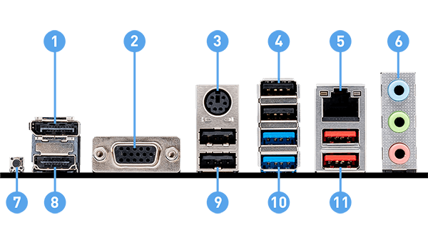 | Onboard Graphics | 1x HDMI™Support HDMITM 2.1, maximum resolution of 4K 60Hz*1x DisplayPortSupports DP 1.4, maximum resolution of 4K 60Hz*1x D-SubSupport VGA, maximum resolution of 1920x1200 60Hz**Available only on processors featuring integrated graphics. Graphics specifications may vary depending on the CPU installed. |