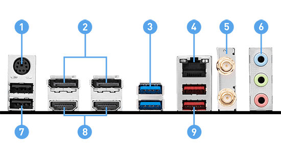 | Onboard Graphics | 2x HDMI™Support HDMI™ 2.1, maximum resolution of 4K 60Hz*2x DisplayPortSupport DP 1.4, maximum resolution of 4K 60Hz**Available only on processors featuring integrated graphics. Graphics specifications may vary depending on the CPU installed. |