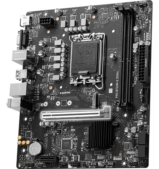 PRO B760M-E DDR4 有多项贴心弹性设计,以及搭载DDR4 大幅提升工作效率。