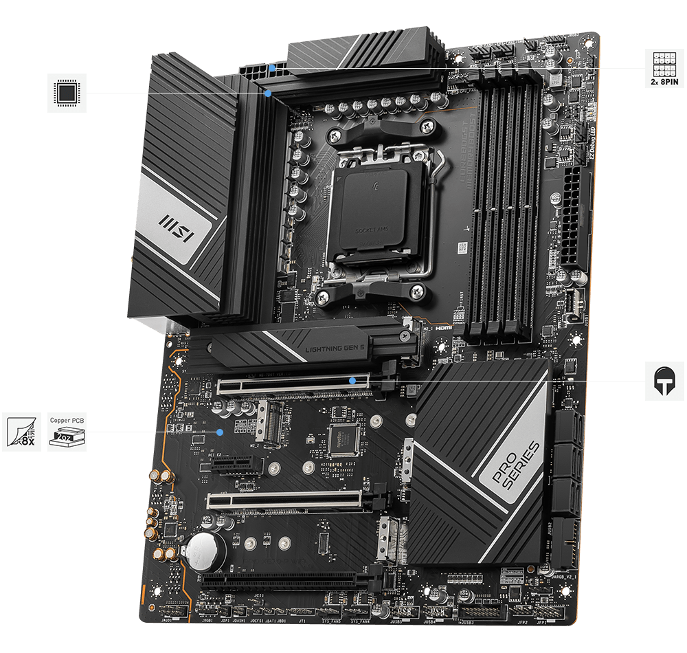 PRO 系列拥有高效能技术搭载,协助用户更有效率地完成工作。 PRO 系列主板稳定性高,并由高品质零组料件建构而成,不仅优化专业工作流程,同时更具耐久性和可靠性。