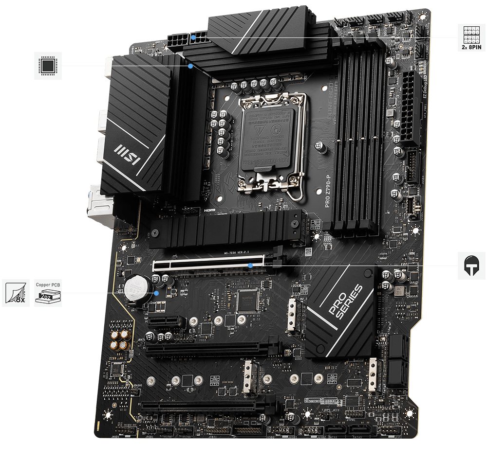 PRO 系列拥有高效能技术搭载,协助用户更有效率地完成工作。 PRO 系列主板稳定性高,并由高品质零组料件建构而成,不仅优化专业工作流程,同时更具耐久性和可靠性。