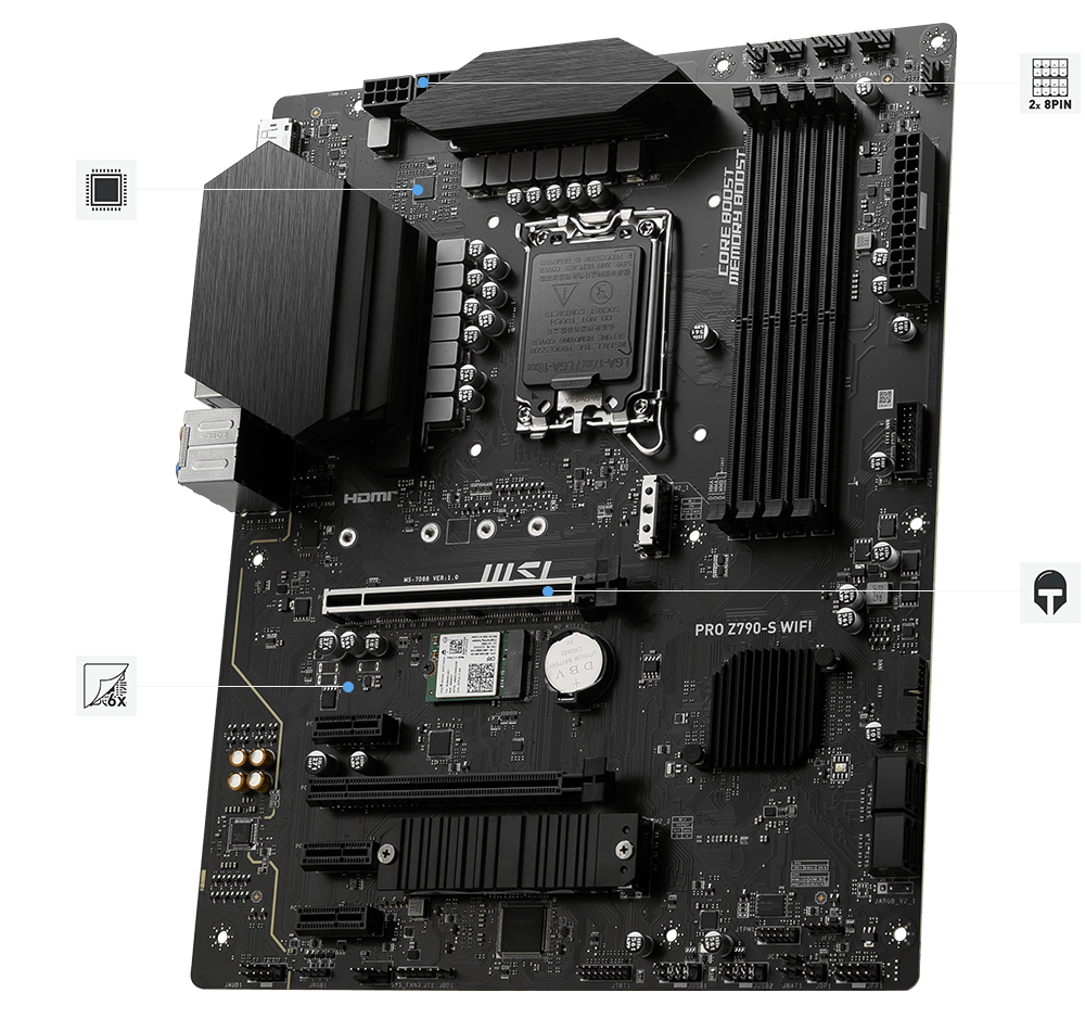 PRO Z790-S WIFI is designed with tons of flexible tools and convenient Wi-Fi solution with DDR5 memory version.