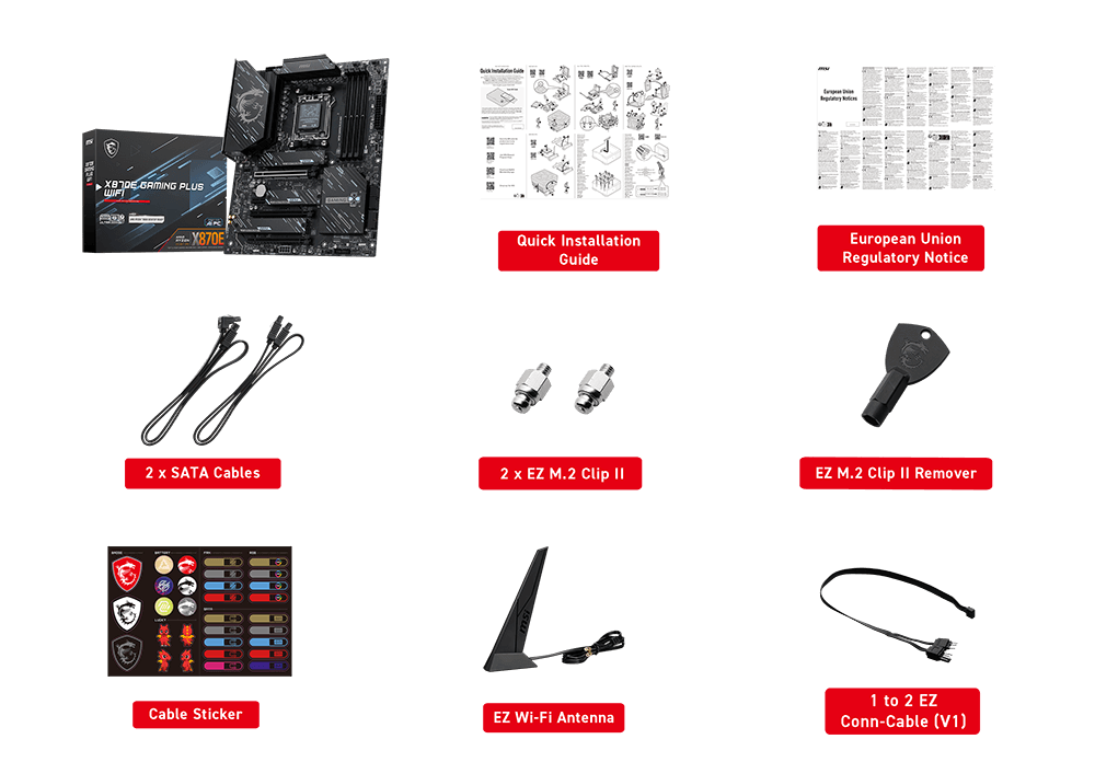 3x M.2 (Qty)M.2_1 源 (From CPU) supports up to PCIe 5.0 x4 , supports 2280/2260 devices M.2_2 源 (From Chipset) supports up to PCIe 4.0 x4 , supports 2280/2260 devices M.2_3 源 (From Chipset) supports up to PCIe 4.0 x4 , supports 22110/2280 devices 4x SATA 6G (Qty) M2_1 slot • Supports up to PCIe 5.0 x4 (For Ryzen™ 9000/ 7000 Series processors) • Supports up to PCIe 4.0 x4 (For Ryzen™ 8000 Series processors) *Please refer to the manual for M.2 SSD heatsink restrictions. |