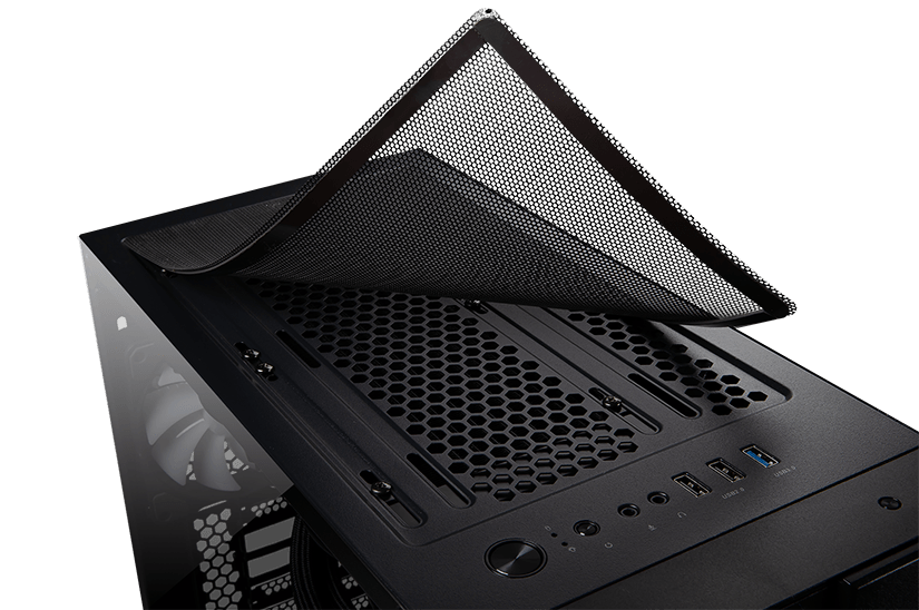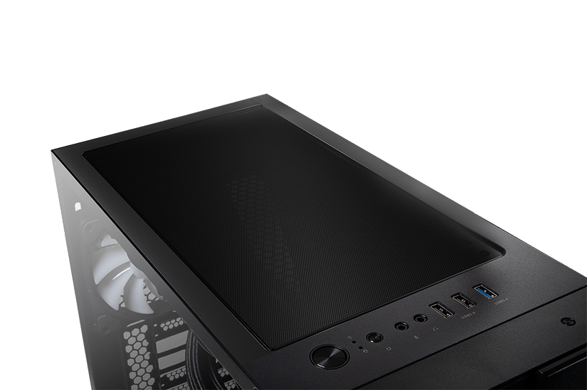 最多可容纳六个系统冷却风扇,顶部为240 mm散热器,前部为360 mm散热器。为整个系统提供通风,以提高稳定性