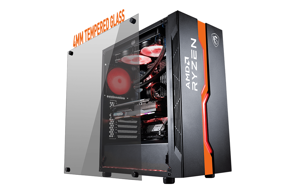The light gray tone of 4mm tempered glass side panel which is ideal for displaying RGB lighting and internal component construction.