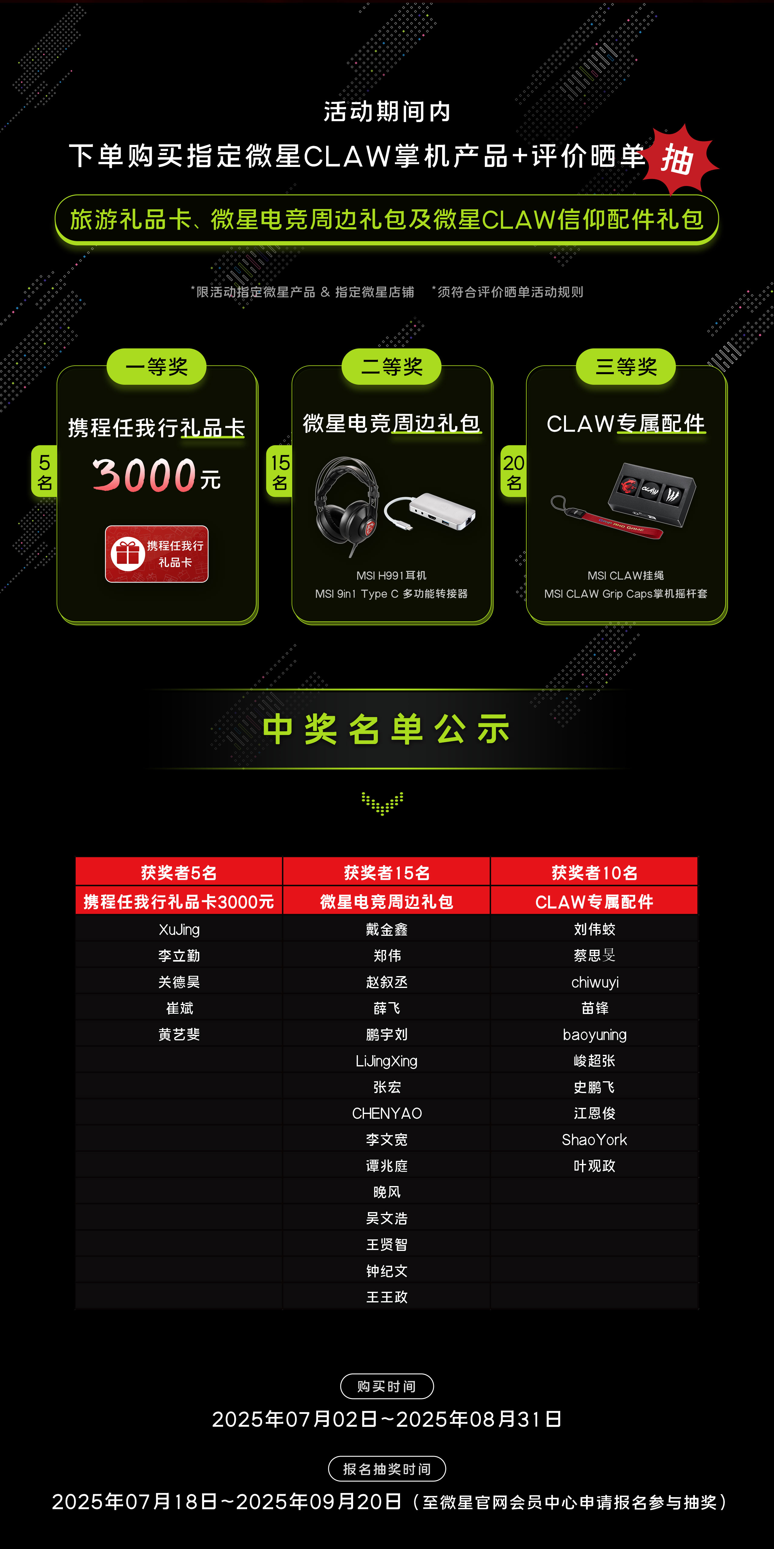 带着微星CLAW掌机“趣”旅行 评价晒单抽至高3000元好礼!