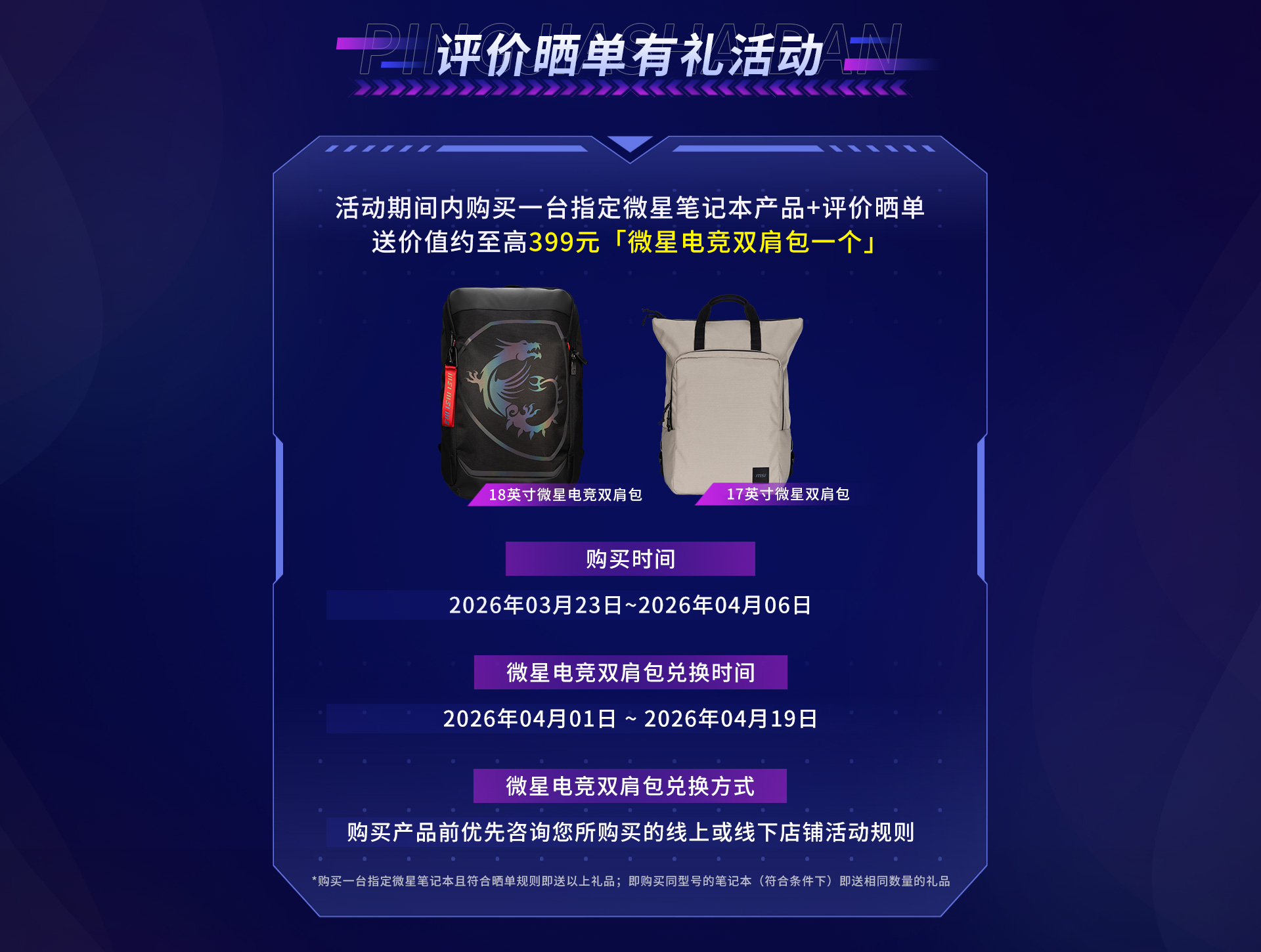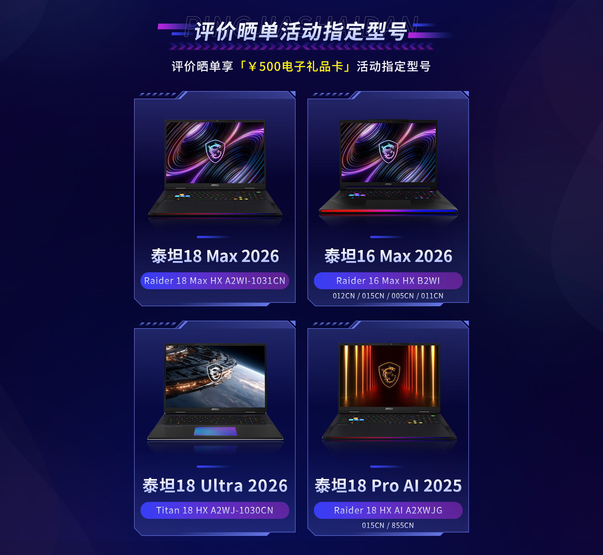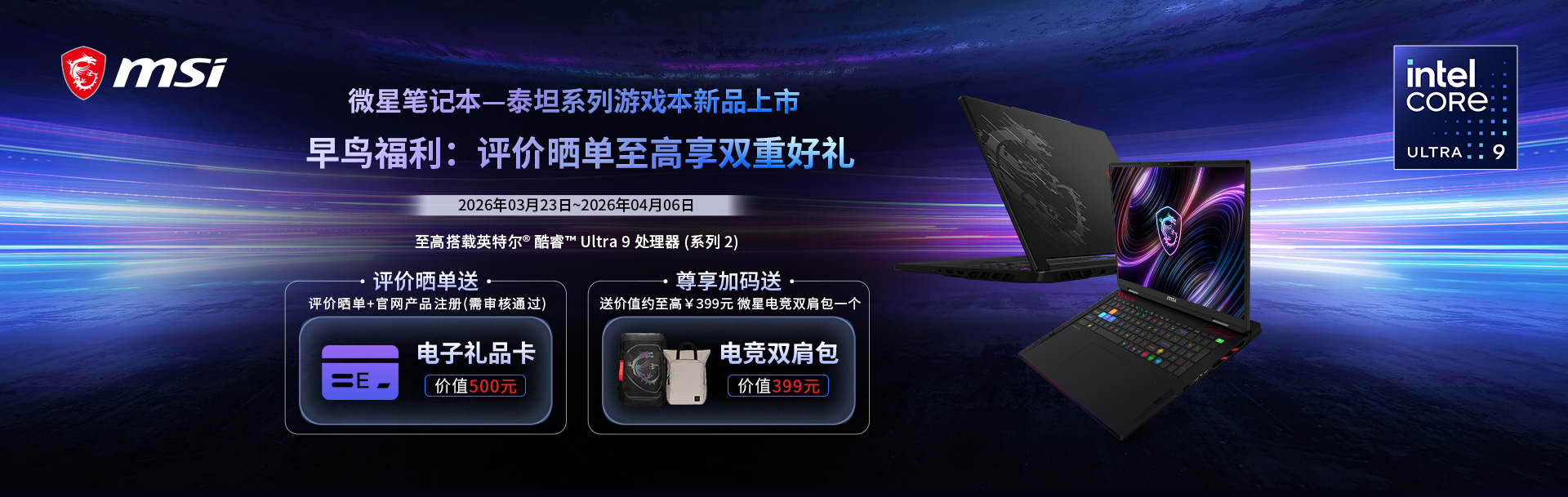 早鸟福利开启:评价晒单至高享双重好礼 微星泰坦系列游戏本新品上市
