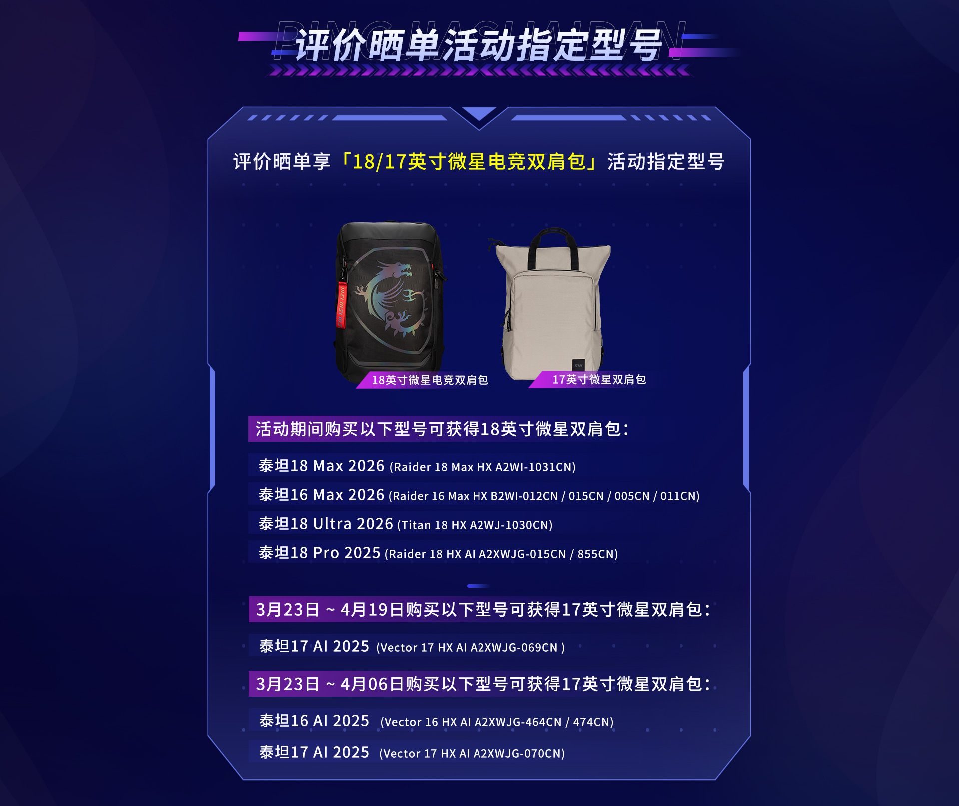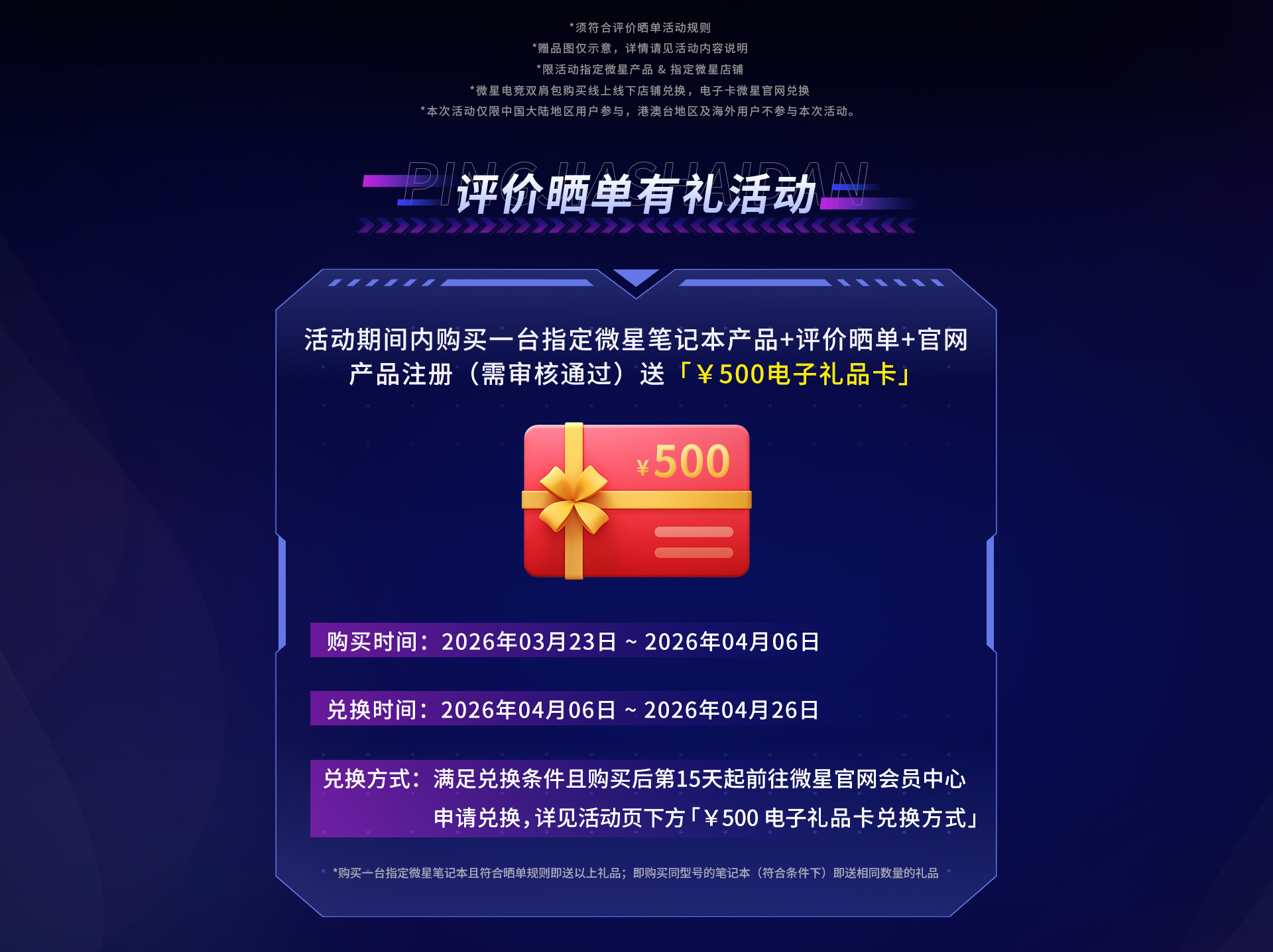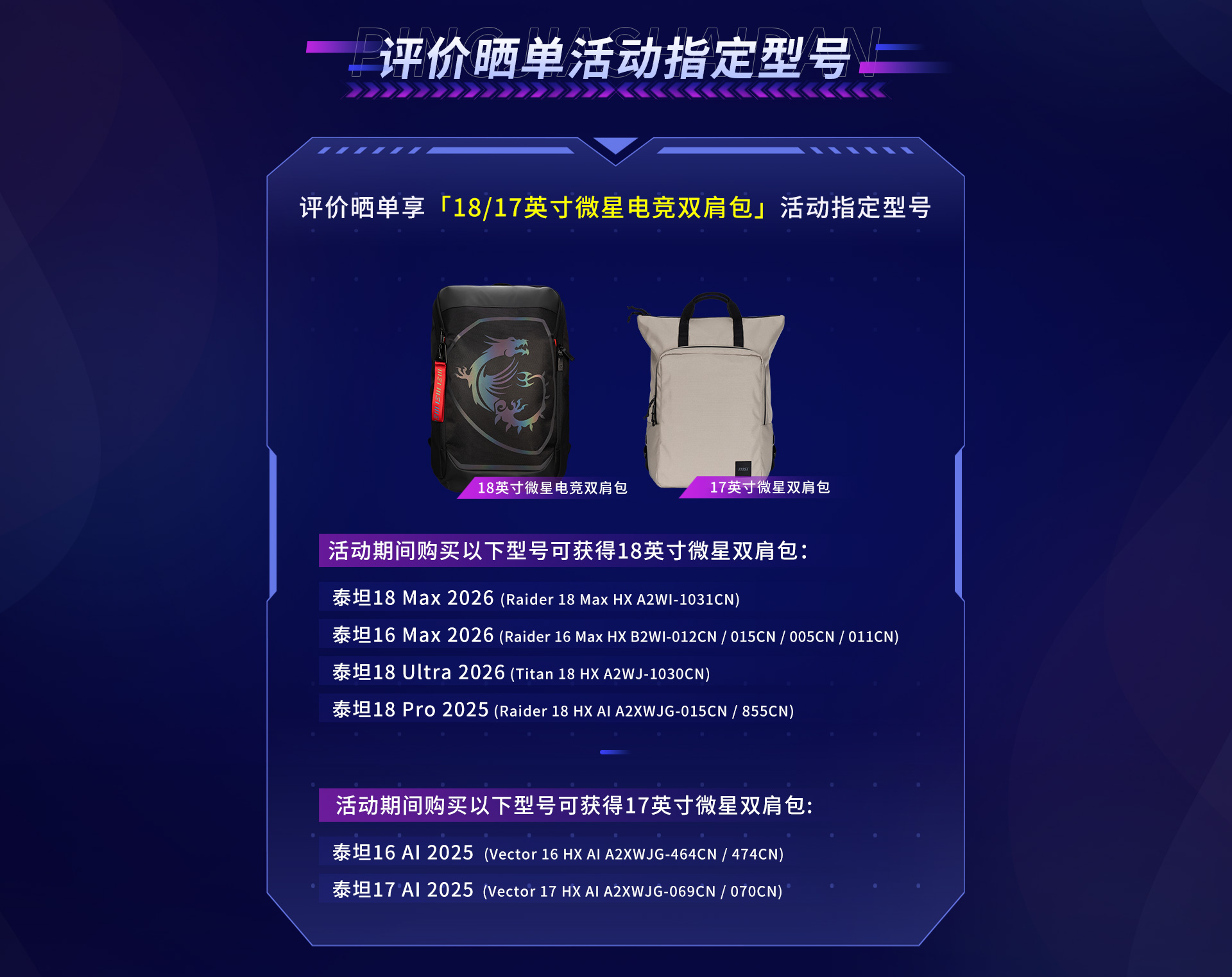 早鸟福利开启:评价晒单至高享双重好礼 微星泰坦系列游戏本新品上市
