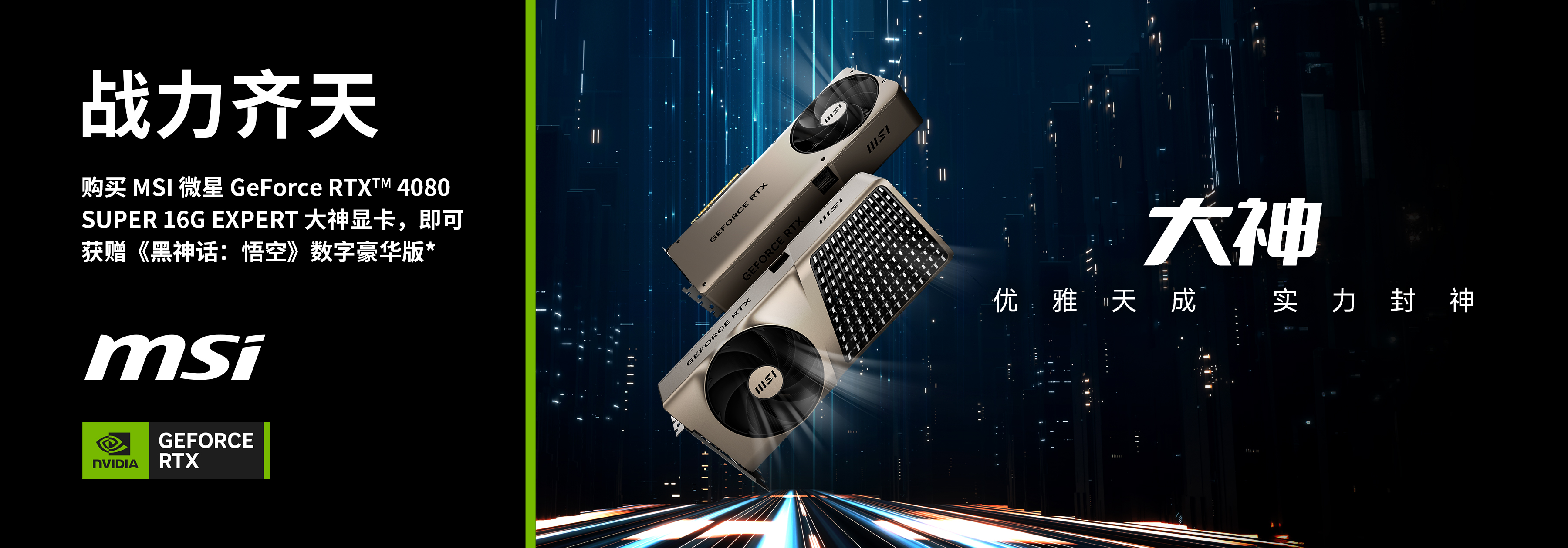 2024年8月7日00:00至8月20日23:59期间,在微星指定店铺内购买GeForce RTX 4080 SUPER EXPERT显卡或搭载GeForce RTX 4080 SUPER EXPERT显卡的电脑整机,登录微星活动系统提交指定资料并经审核通过后,即可申领《黑神话:悟空》数字豪华版。