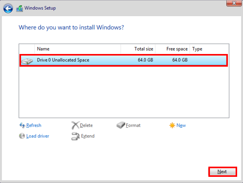 6. 当驱动已安装完成,安装系统所需的磁碟将正确显示。
