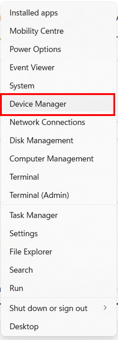 4. 右键点击任务栏上的Windows图示,点选设备管理器