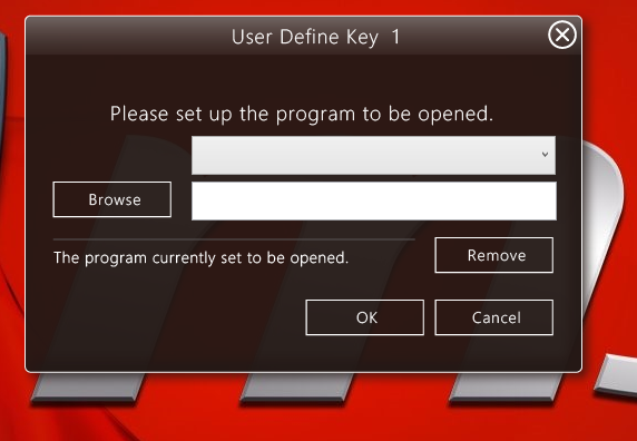 若系统同时有安装SCM及Dragon Gaming Center,第一次使用请按下快速启动Fn按钮 (Fn+F4) 来打开Dragon Gaming Center [Instant Play: Play Key Setting] 页面来设置用户定义功能。