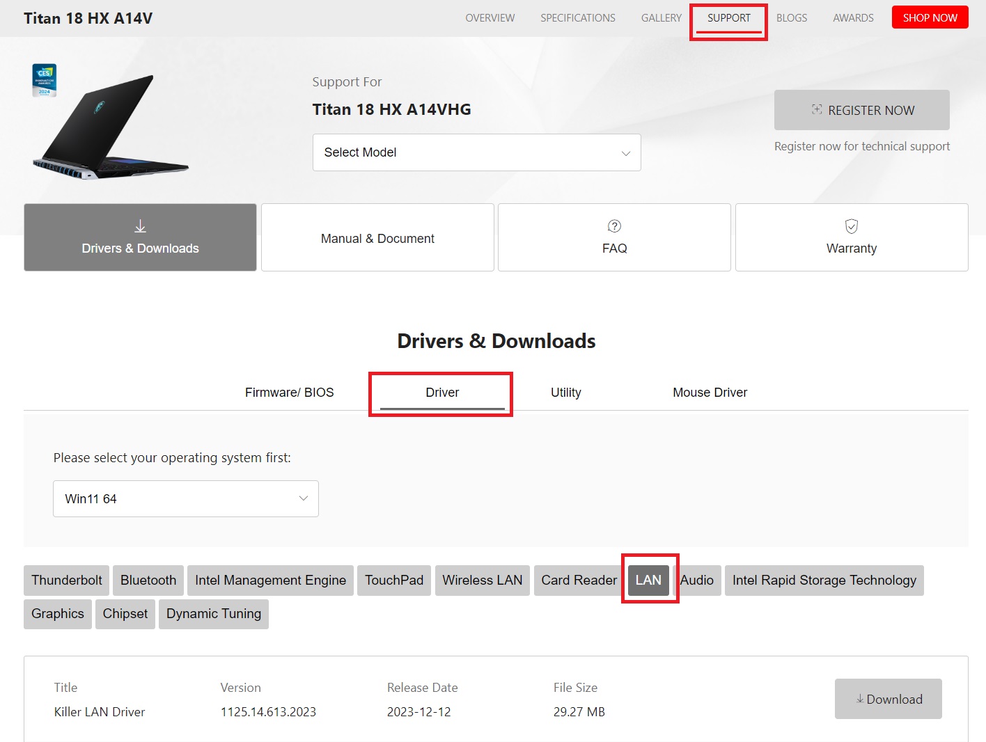 a. 从Intel官网或MSI官网下载最新驱动程序
