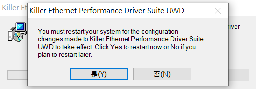 c. 当移除程序跳出以下窗口要求重启系统时,选择 “是” 来重启系统。如果选择 “否”,请手动重启系统